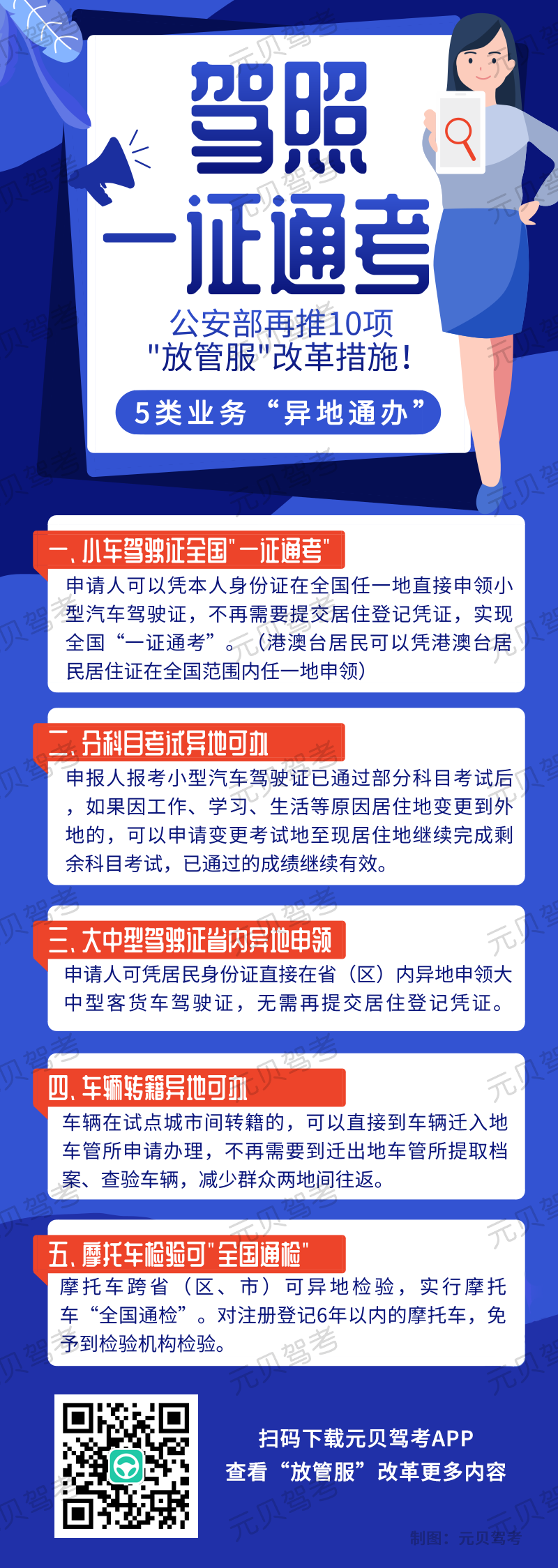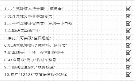 为深入“放管服”改革部署,积极回应群众和企业关切,进一步简政放权、减证便民,优化营商环境,助推高质量发展,努力提供普惠均等、便捷高效、智能精准的公安交管服务,在2018年推出20项“一次办、马上办、就近办、网上办”公安交管“放管服”改革新举措的基础上,公安部继续推出10项深化公安交管“放管服”改革便民利民服务措施。