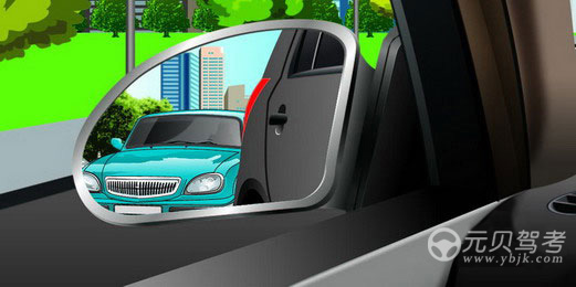 【元贝解析】争论较多的就是b和d了,从图中可以看出,后视镜中显示蓝色车距离本车已经很近了,所以即使开了转向灯,左边的车还会继续通过的。此时不能直接向左变更车道,应该先开启转向灯,等后车通过后再进行变道。