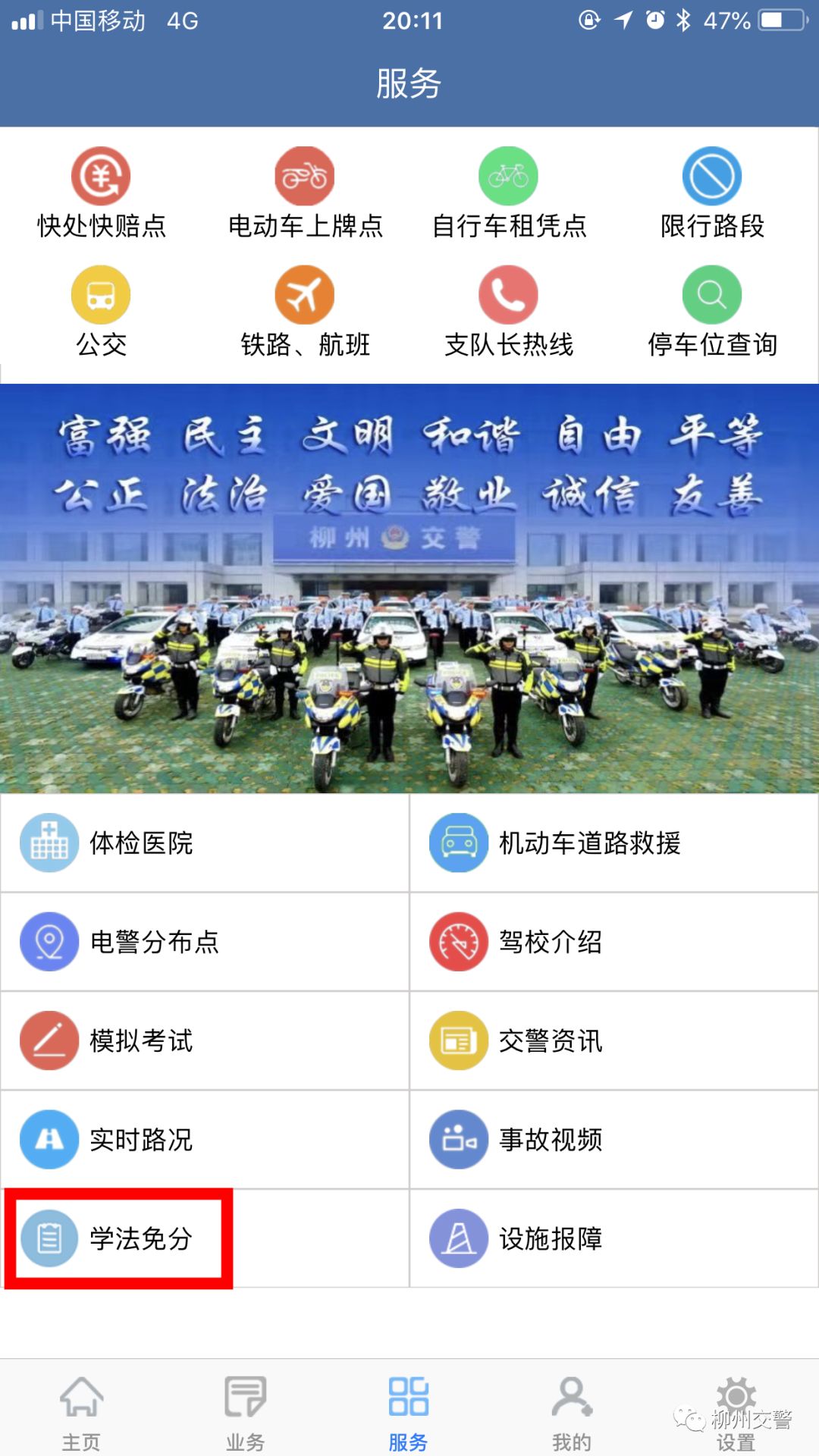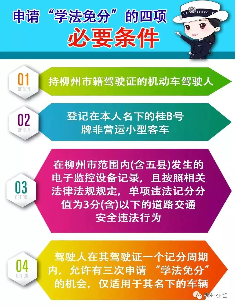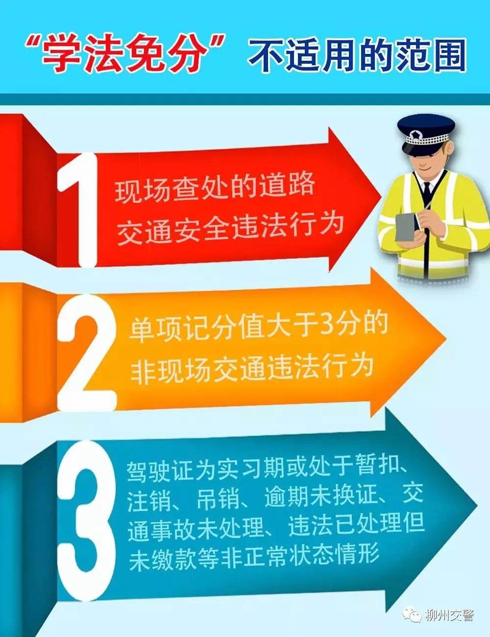 柳州驾驶人注意啦!在“柳州交警”app上可以进行“学法免分”学习。“学法免分”是指在一个记分周期内,记分未达到12分的驾驶人,可以通过“柳州交警”app参加交通安全法律法规及相关知识的学习和考试。考试合格后,驾驶人可以对一起记分分值为3分(含)以下未处理的非营运小型客车非现场交通违法做免记分处理。适用于持柳州市籍驾驶证的驾驶人,对本人名下的桂b牌非营运小型客车,在该市范围内(含5县)发生的非现场查处的道路交通违法行为。更多资讯请点击()
