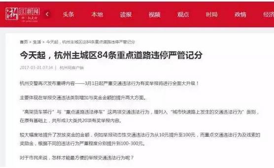 2017年3月1日起,杭州交通大整治,严管记分,力度堪比查“酒驾”。