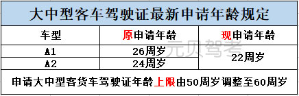 除此之外,公安部对申请大中型客货车驾驶证的年龄也做了相应的调整。