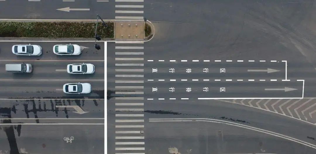 它的功能类跟“左/右转弯待行区”是一样的,是为了提高交叉口直行车辆的通行能力,在不影响其他车道行车的情况下,有效利用道路空间,提高通行效率。