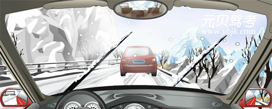 解析:《道路交通安全法实施条例》第五十八条:机动车在夜间没有路灯、照明不良或者遇有雾、雨、雪、沙尘、冰雹等低能见度情况下行驶时,应当开启前照灯、示廓灯和后位灯,但同方向行驶的后车与前车近距离行驶时,不得使用远光灯。机动车雾天行驶应当开启雾灯和危险报警闪光灯。切记:前方有车,跟车行驶,使用近光灯,本题答案应为a。