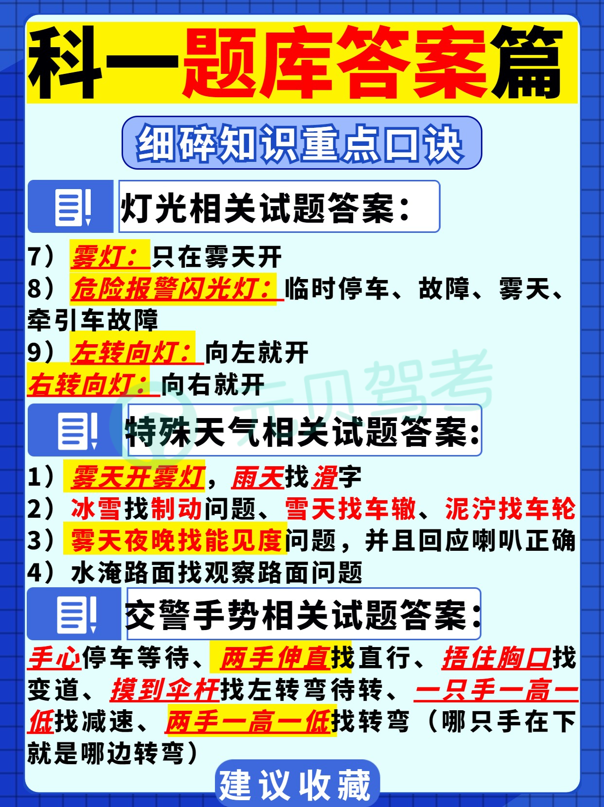 这份攻略超全!科目一考试57条技巧包括:扣分 申请驾驶车型年龄 酒驾 处罚 夜间灯光 特殊天气 交警手势...