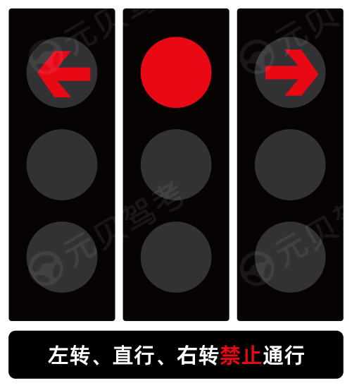 1、当圆盘灯和左转与右转箭头灯都是红灯的时候,禁止任何方向的通行,所有车辆必须停止。