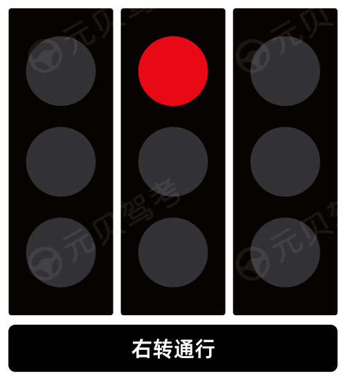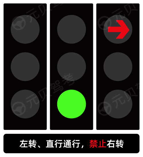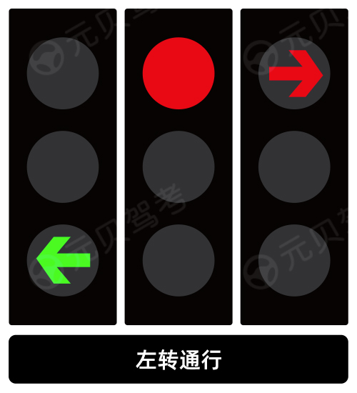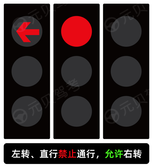 3、当左转的箭头灯和圆盘灯都是红灯,右转灯不亮的时候,只允许右转。