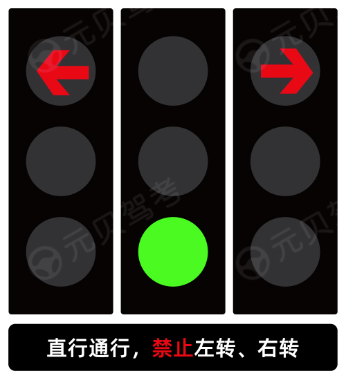 7、当圆盘灯是绿灯,左转和右转的箭头灯都是红灯的时候,只可以直行,不可以左转或者右转。