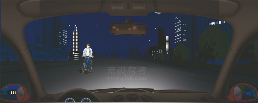 分析:夜间会车应当在距对方来车150米以外改用近光灯,若对方车辆不关闭远光灯,可连续变换灯光提示对向车辆。当遇对面来车仍不关闭远光灯时,应及时减速靠右侧行驶或停车让行。