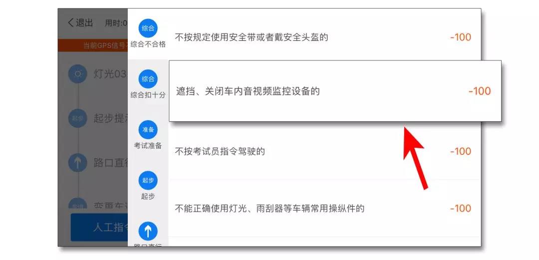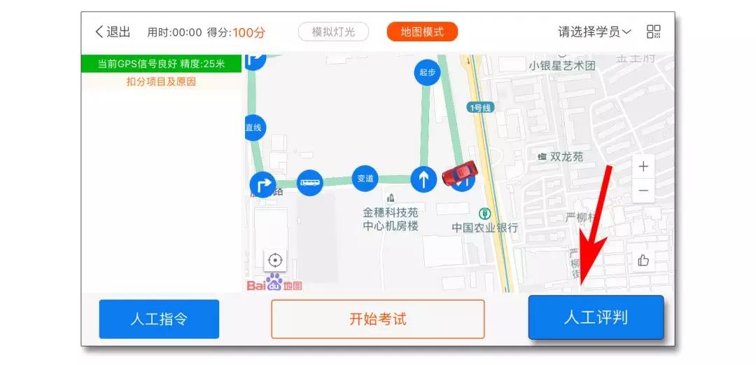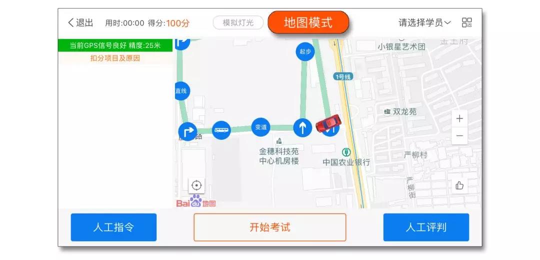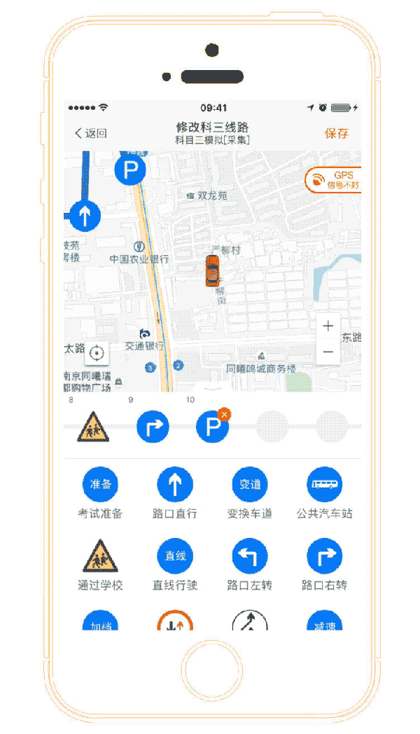 5、当实际行驶到某一项目位置时,同步在元贝教练app点击对应项目的图标,创建点位