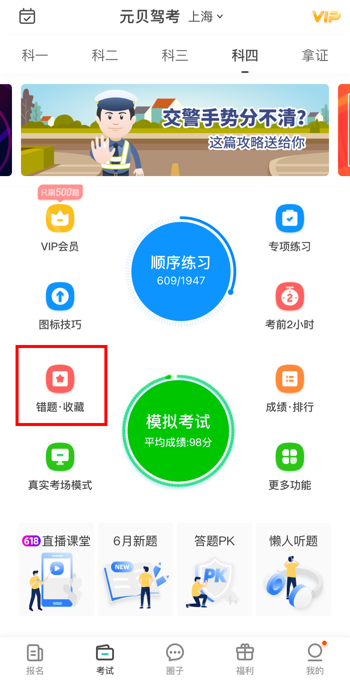 点击【考试】-【更多功能】-【错题·收藏】