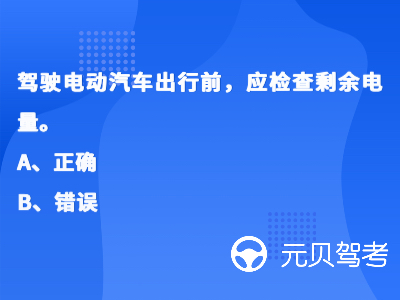 解析:驾驶电动汽车出行前,应提前检查好剩余电量,掌握好充电时间,尽量保证每天使用车辆后及时充电,避免因电量过低导致车辆搁浅;充电前,养成良好的充电设备外观检查及车辆充电口检查习惯,确保充电安全。
