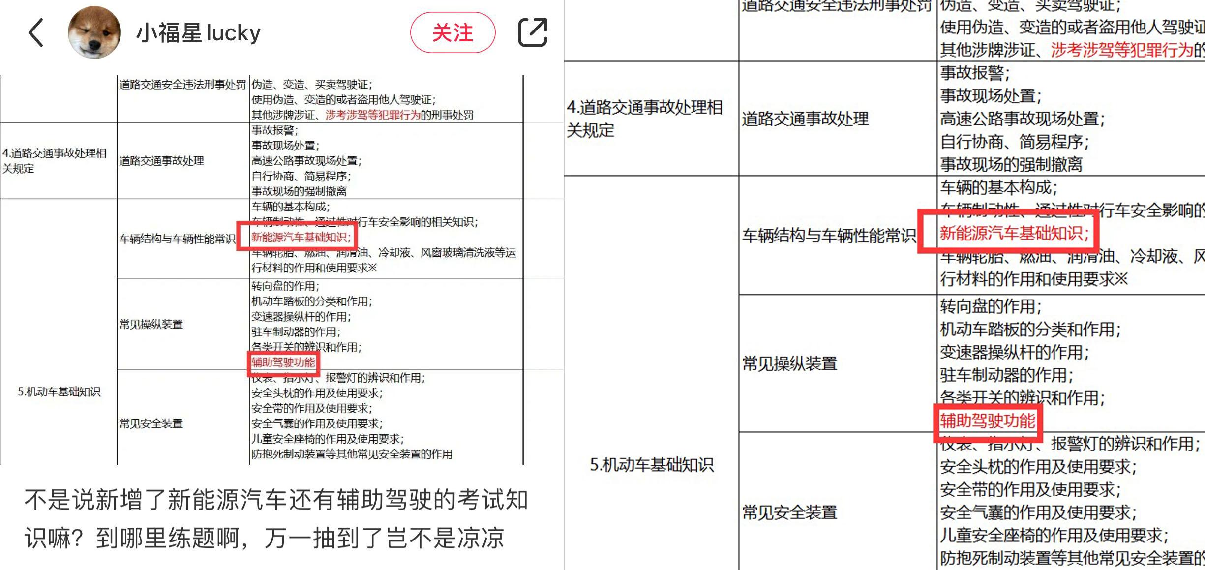 可就在前几天,小编在后台收到一些学员反馈,他们遇到了一些“与众不同”的新题,跟新能源电车有关,还有题目问ldw缩写是什么。起初,小编也很惊讶,为什么会有这些题目出现,后来一翻新规条例,发现原来早就有迹可循。在某平台上,小编也看到了学员发的相关求助笔记。