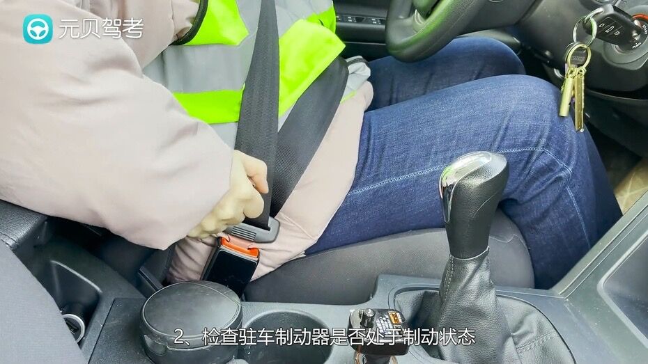 2、检查驻车制动器操否处于制动状态。