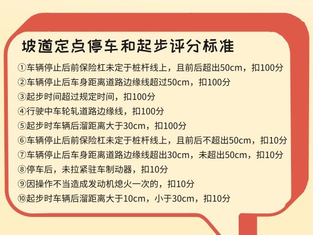 语音提示后需要在30秒内完成坡道起步,打左转向灯保持3秒,缓抬离合,当车身发生抖动时保持离合不动,右脚缓慢松开刹车,车辆即可平稳起步。直行,关闭左转向灯,离开考试区域。