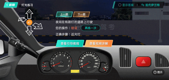 ②选择【考试】-【科三】-【灯光操作】-【灯光操作练习】(购买vip可使用该功能)
