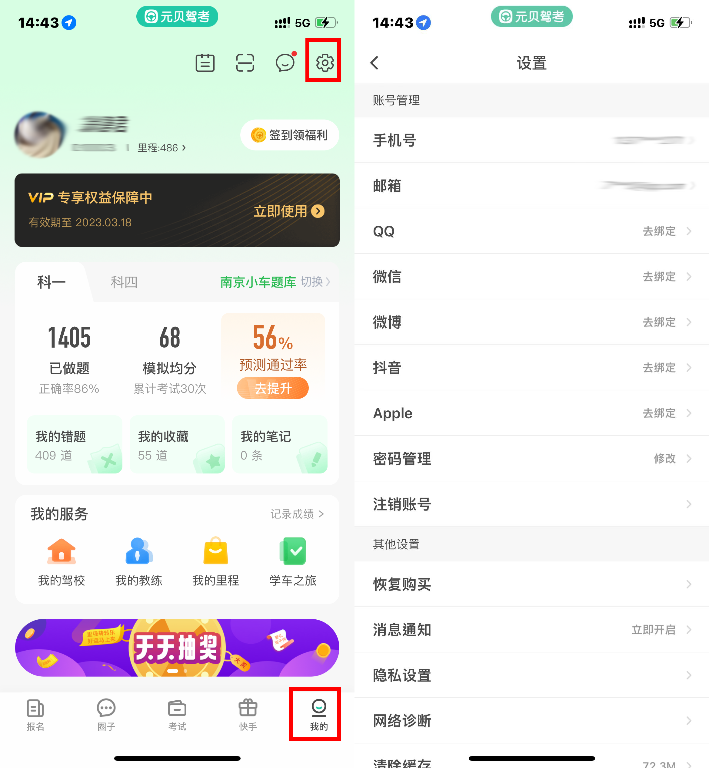 操作步骤:打开元贝驾考app,登录上自己的账号,打开【我的-设置-账号管理】,想换哪个换哪个!是不是特别方便~