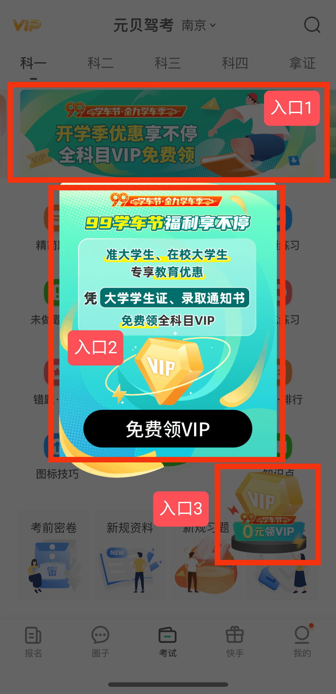 打开元贝驾考app点击活动入口就可以参与本次活动了哦~,具体方式如下图所示👇👇👇(点击任意一个入口均可参与)