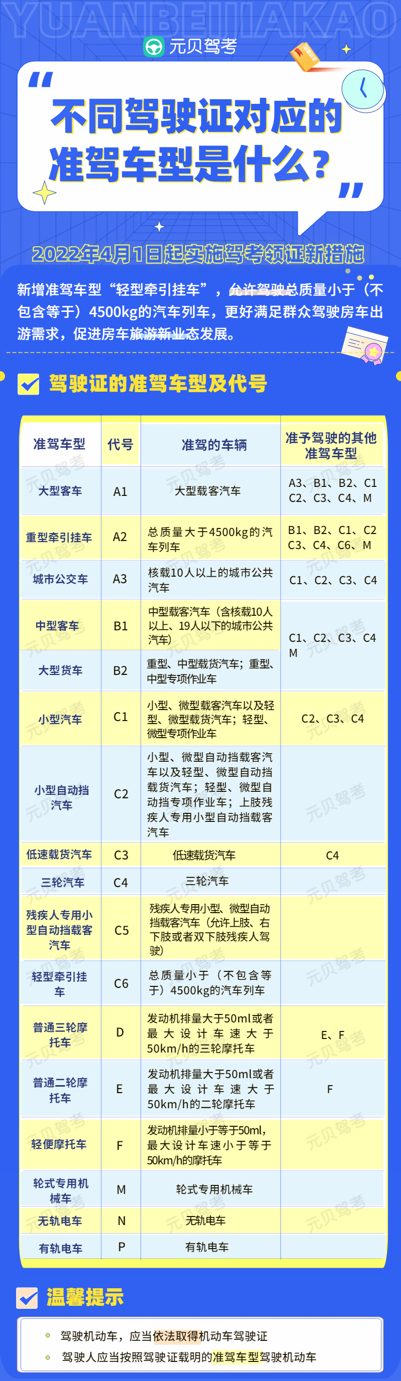 公安部发布通知,对机动车《准驾车型及代号》进行了修改。一是对a2准驾车型描述做了修改;二是增加了c6驾驶证,这也是c6驾照第一次正式登上历史舞台!