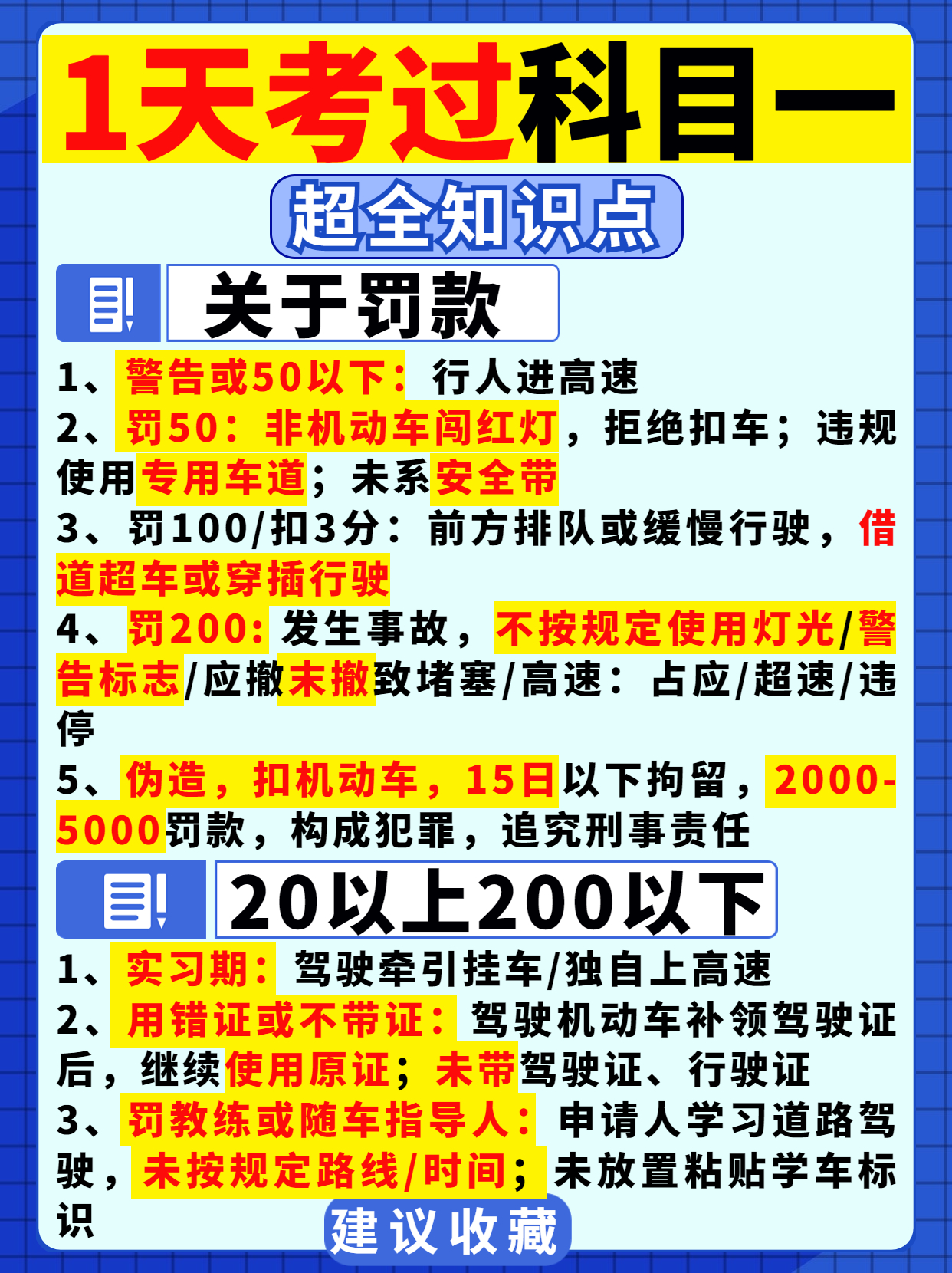 好多学员问元贝驾考小编有没有驾考科目一应试答题技巧,尤其是罚款题,今天元贝驾考小编给大家准备了新规罚款题 英文缩写相关技巧✅希望大家都能顺利一把过,轻松拿驾照!
