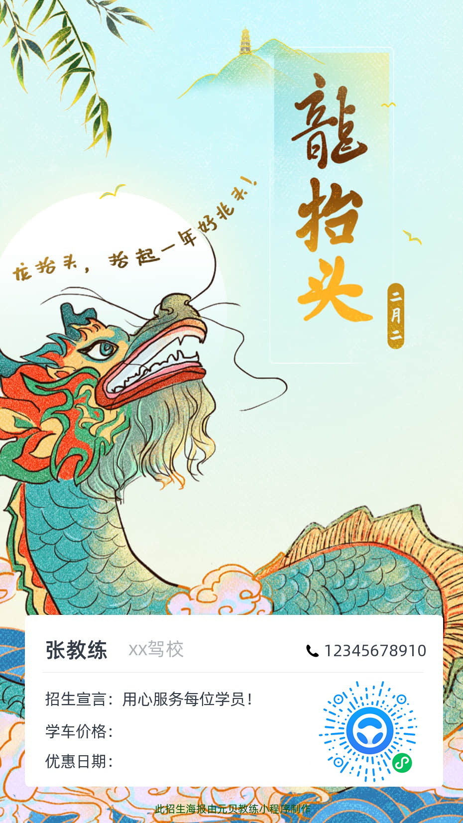 元贝教练app为广大教练定制了龙抬头招生海报
