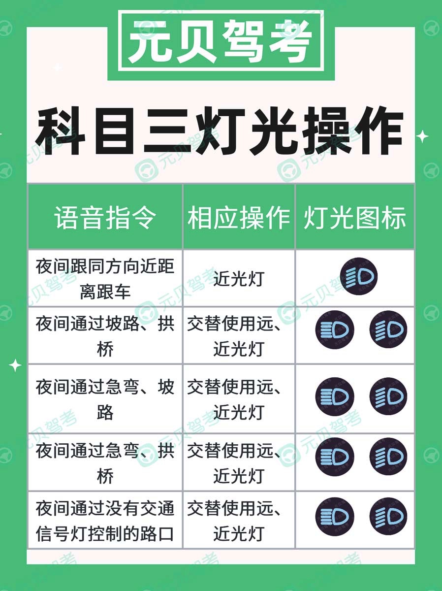 科目三灯光模拟,说难不难,但科目三挂在灯光上的学员着实也不少。主要有2大原因:一是没掌握规律,二是心态过于浮躁。