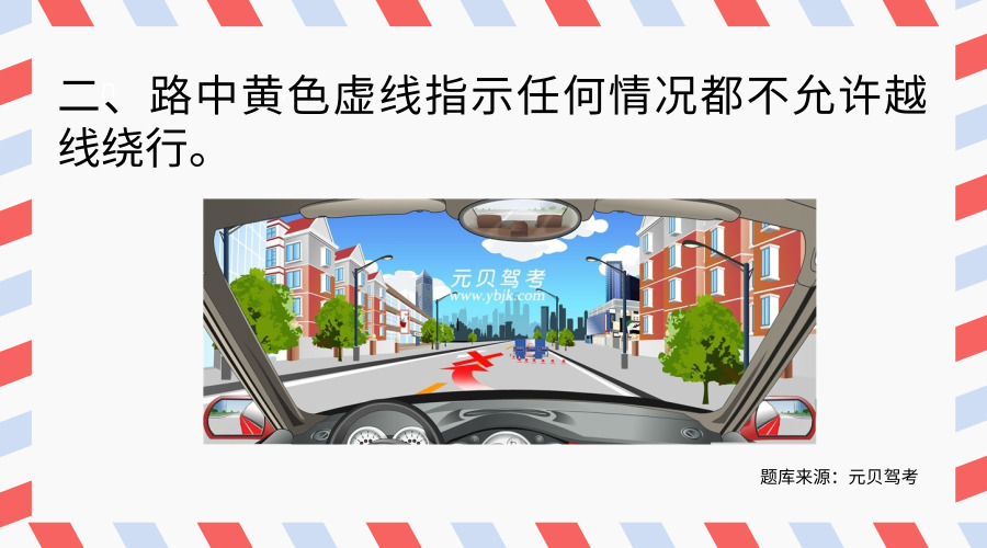 知识点补充:黄色虚实线,一条是实线,一条是虚线,虚线在哪一侧,那侧的车辆就可以从此临时跨越,比如超车或转弯。