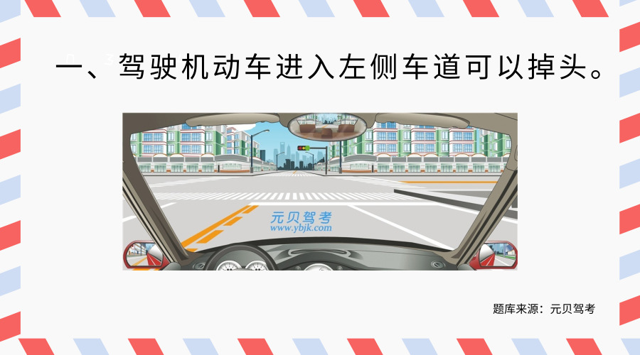 解析:由图我们可以知道,道路中心线为黄色虚实线,虚线一侧可以掉头,因此本题正确。