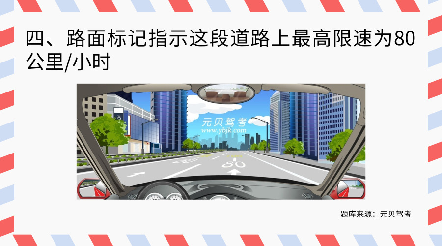 解析:白色的是最低车速,黄色的是最高车速。题目图片中,地面数字是白色的80,表示最低限速80公里/小时,题目描述有误,因此本题答案为错。