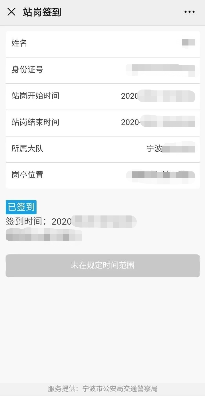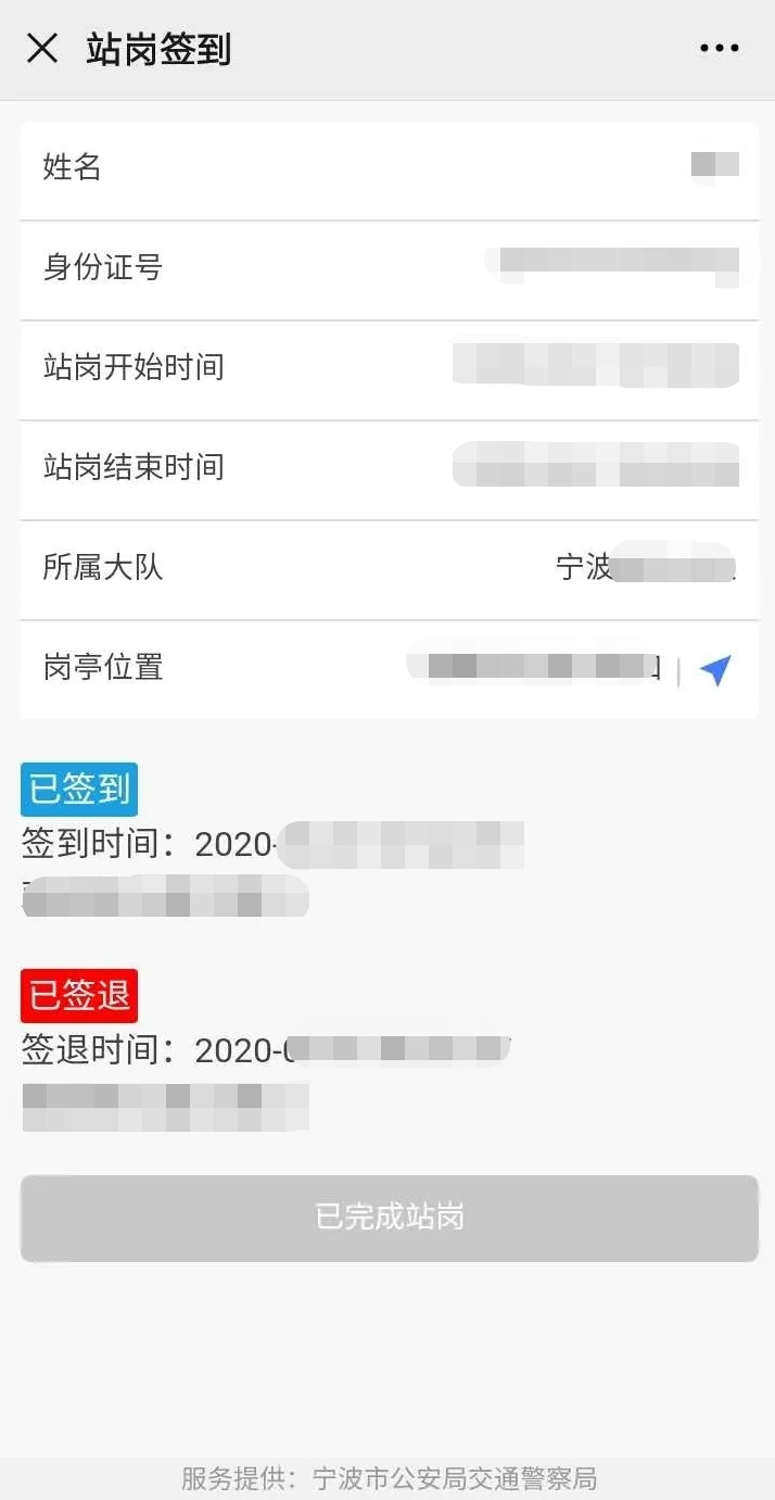 9、执勤结束记得签退。学员开始和结束站岗都会拍照留存,确认完成执勤记得签退,待交警确认后再离开。