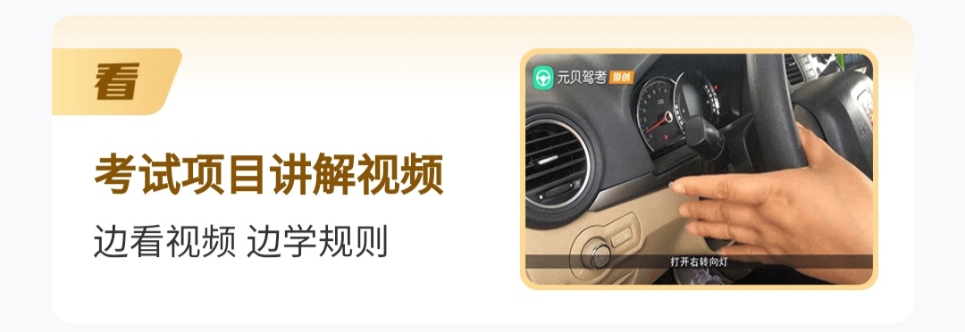 练车之前先看讲解视频了解每个项目的考试要求,边看视频,边学规则,考试之前再巩固一遍,加强记忆,摆脱临考焦虑。