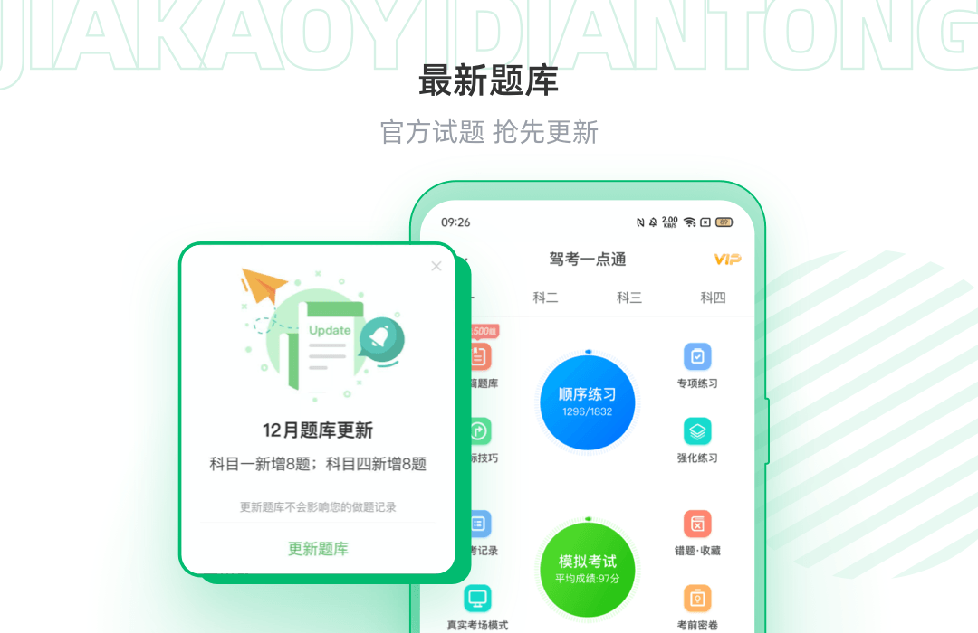 驾考一点通app实时同步更新驾照考试科目一、科目四题库,对题库进行详细整理分类,支持多车型专用试题练习,有助于广大学员系统地学习,帮助学员提高成绩、效率通过考试。
