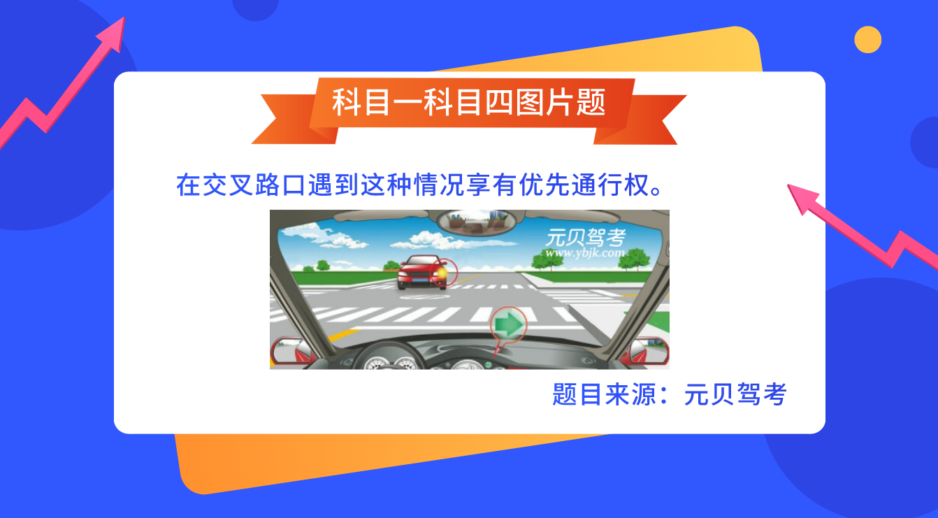 元贝分析:仔细观察图片,题目说“在交叉路口遇到这种情况”,没有说是谁遇到。但注意此时图片主视角是即将右转的车,在没有说明主体的情况下,一律默认主视角的车辆。也就是我方车辆即将右转,对向的红车即将左转。大家记住一个原则“右转让左转”,我方汽车要让对方车辆先行,题目描述的是错的,本题答案为错。