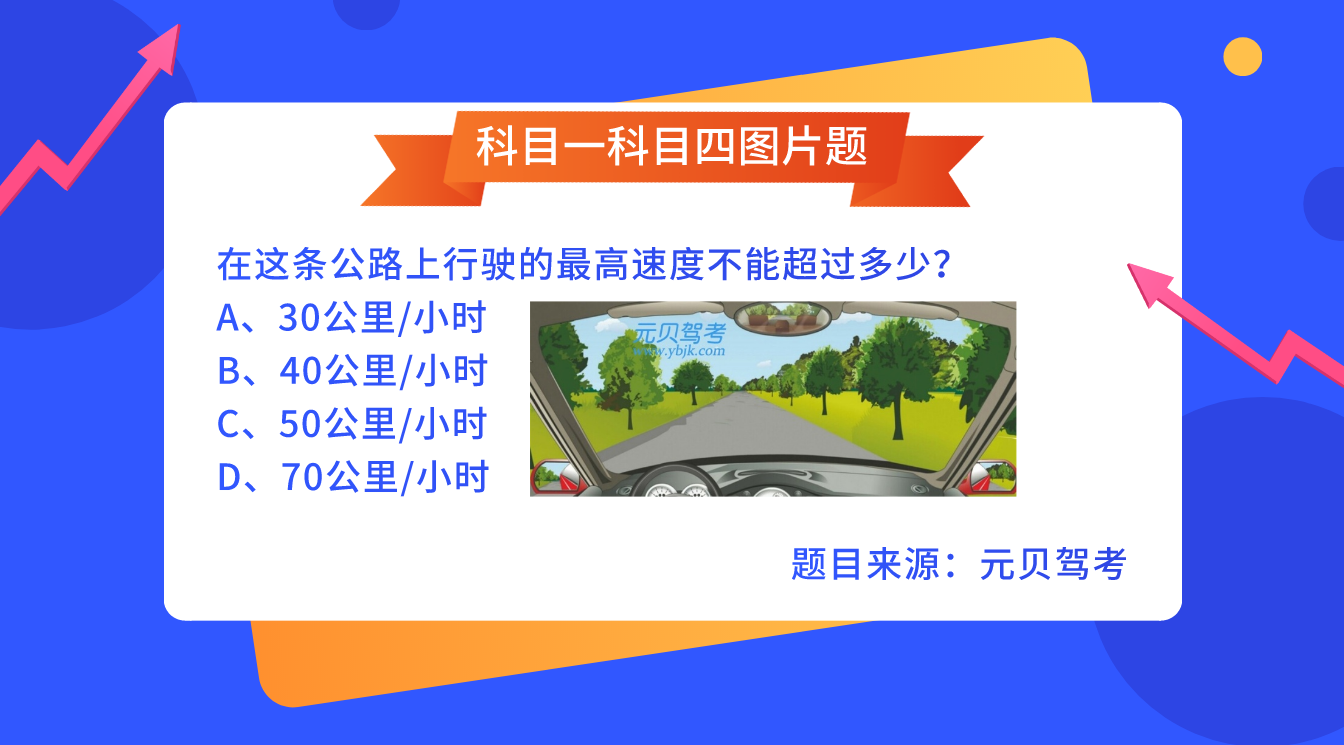 元贝分析:跟上题一样,考察的都是没有中心线的道路限速。按规定,没有中心线的公路最高限速40km/h,要比城市道路快10km/h。大家可以这样记“公路永远比城市道路快”。