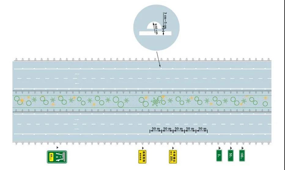 主要借震荡提醒司机此处需要减速慢行,并且与前车保持一定车距,注意安全。