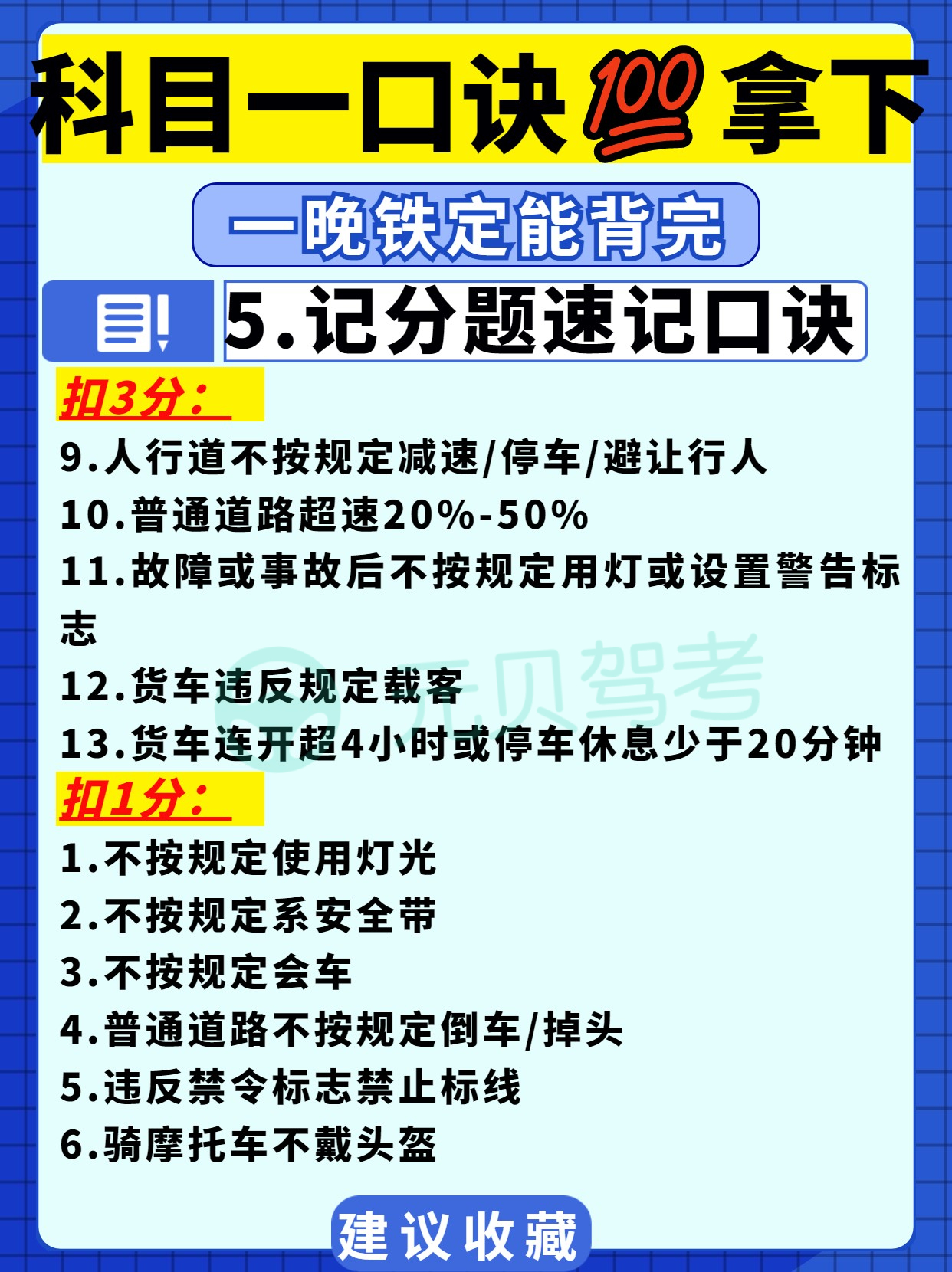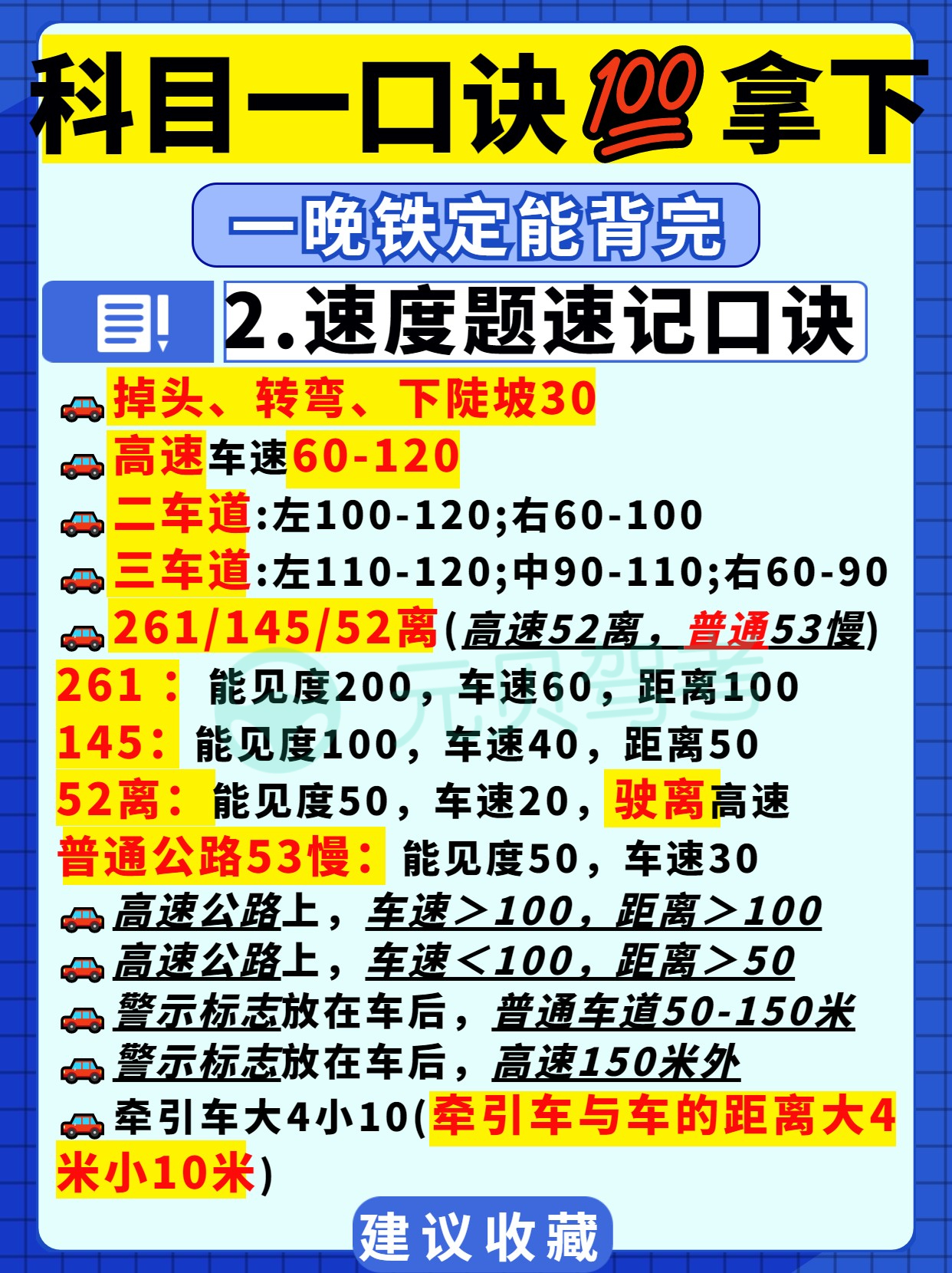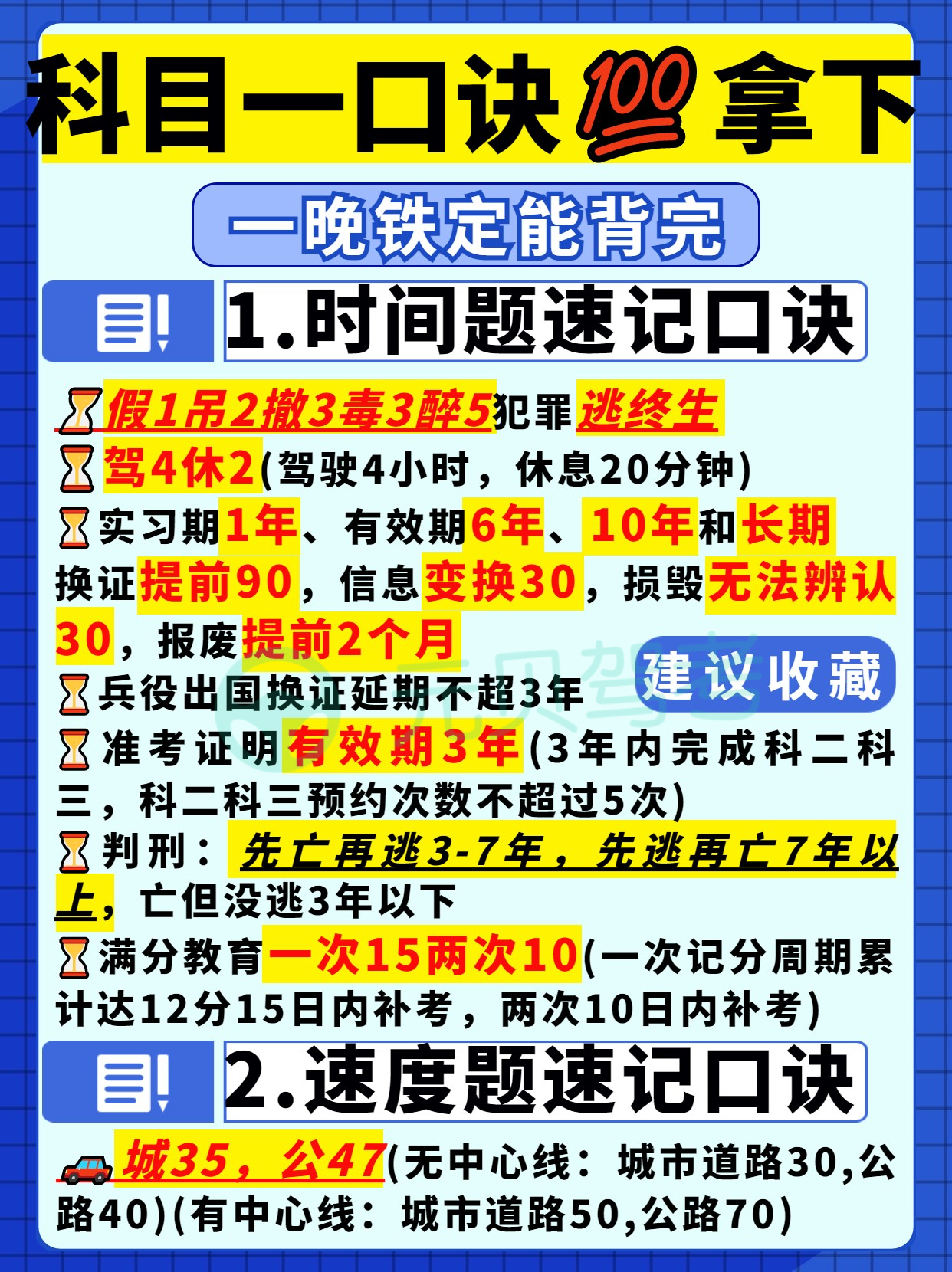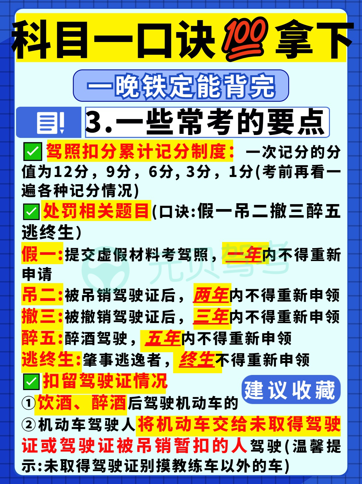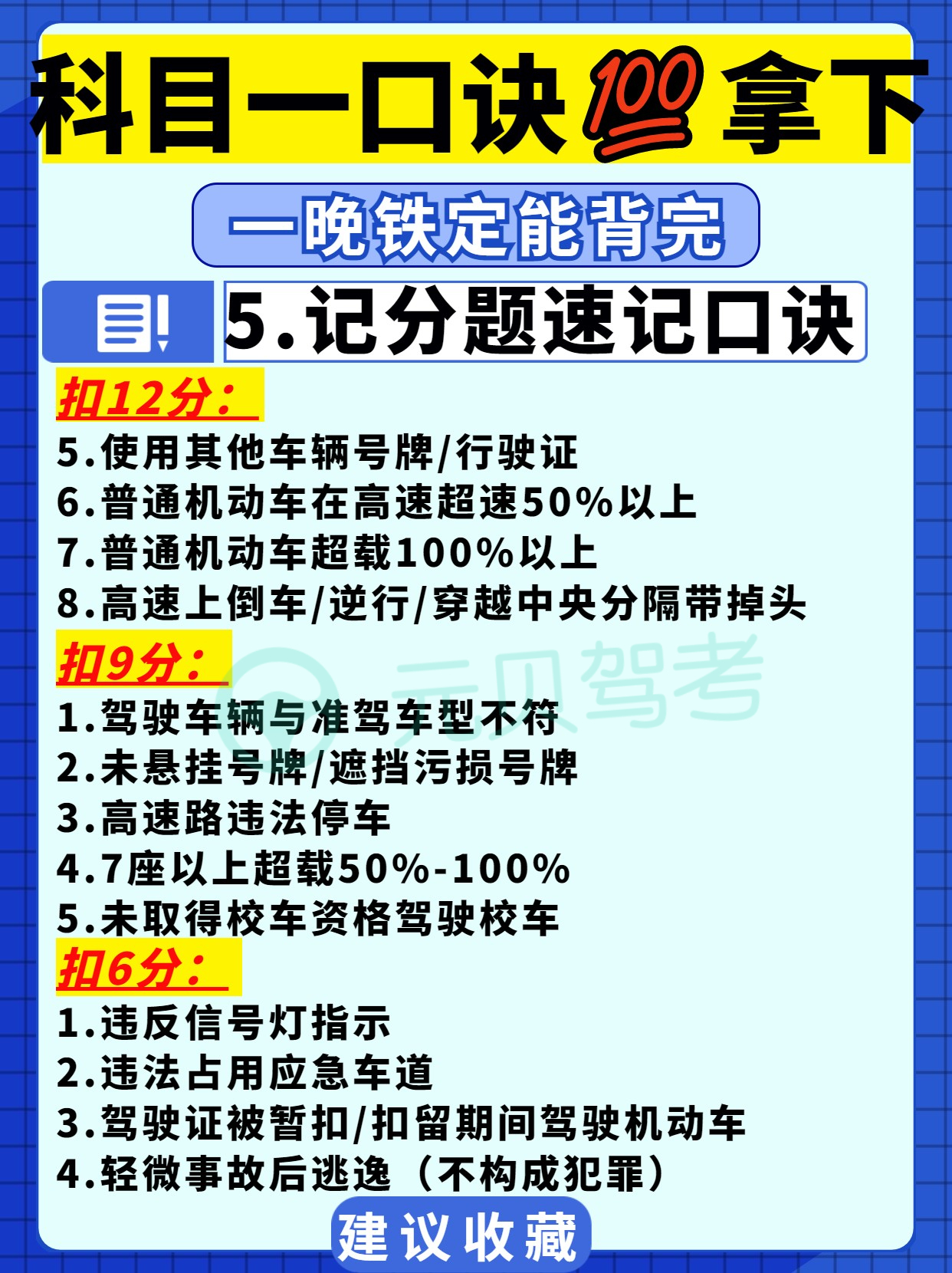 目前,科目一题库有超1600道题,题量大考点多,科目一考试难度虽比不上科二科三,但很多学员跟元贝驾考小编说过学得很辛苦,考得很闹心!有什么办法能更好地把题目刷进脑袋呢?今天这篇笔记大家也要好好看好好背噢!