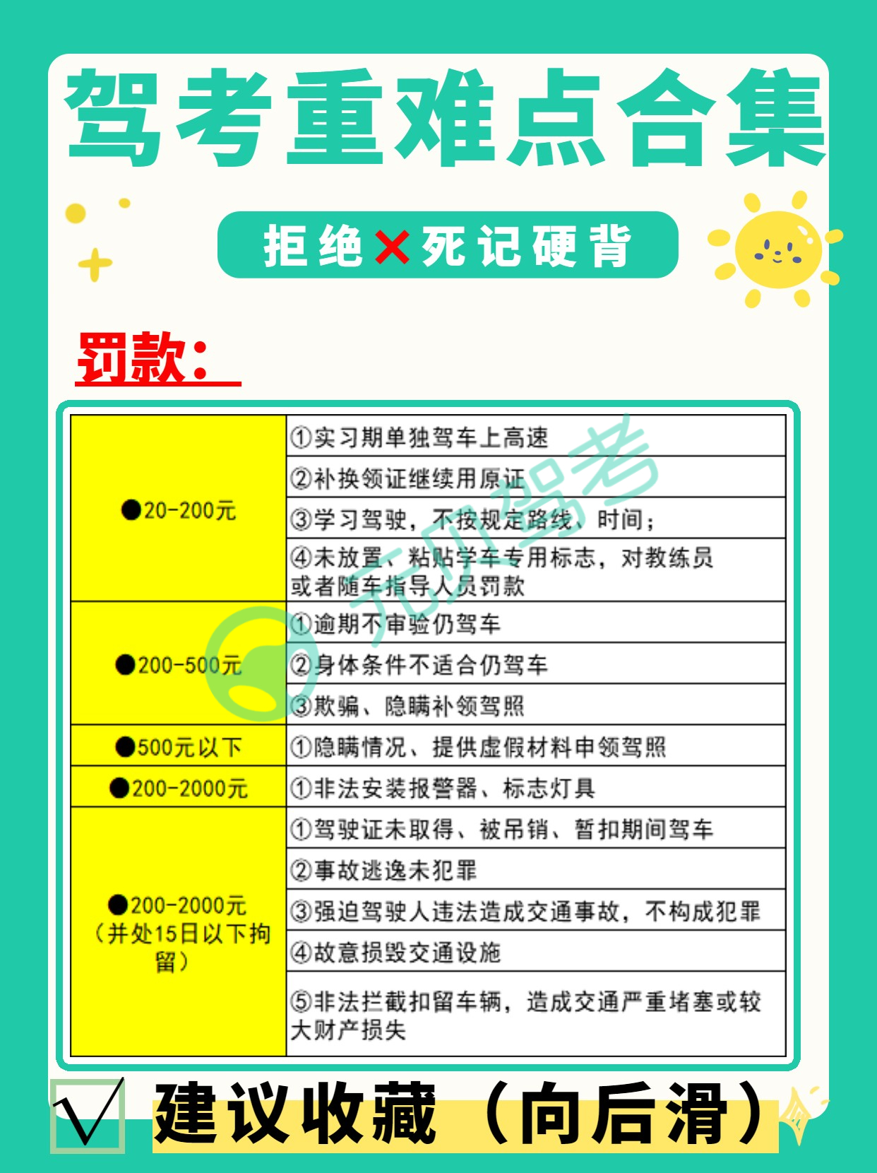 元贝驾考小编今天为大家总结了一些方法,里面有"超速类交通违法记分分值一览表"、"道路车速"、"新规罚款"、"驾考科目一至科目四流程"、"驾考速记口诀"以"灯光相关技巧",希望对大家有用!