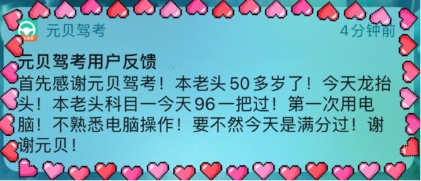 【案例证明】:前段时间,50多岁大爷用元贝驾考刷题,科目一高分过噢!