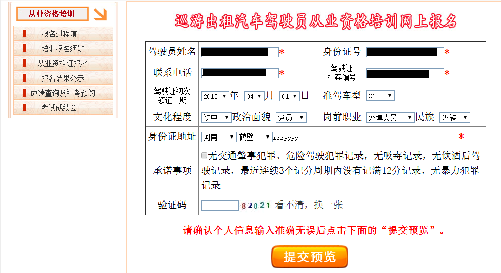 我们以巡游车培训报名为例,演示一下整个报名过程 |