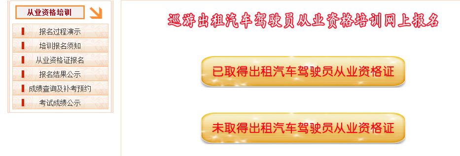 4、先根据情况选择是否取得过出租汽车驾驶员从业资格证,如果已经取得过出租汽车驾驶员从业资格证,且在有效期内,只需要参加区域科目的培训和考试。 |