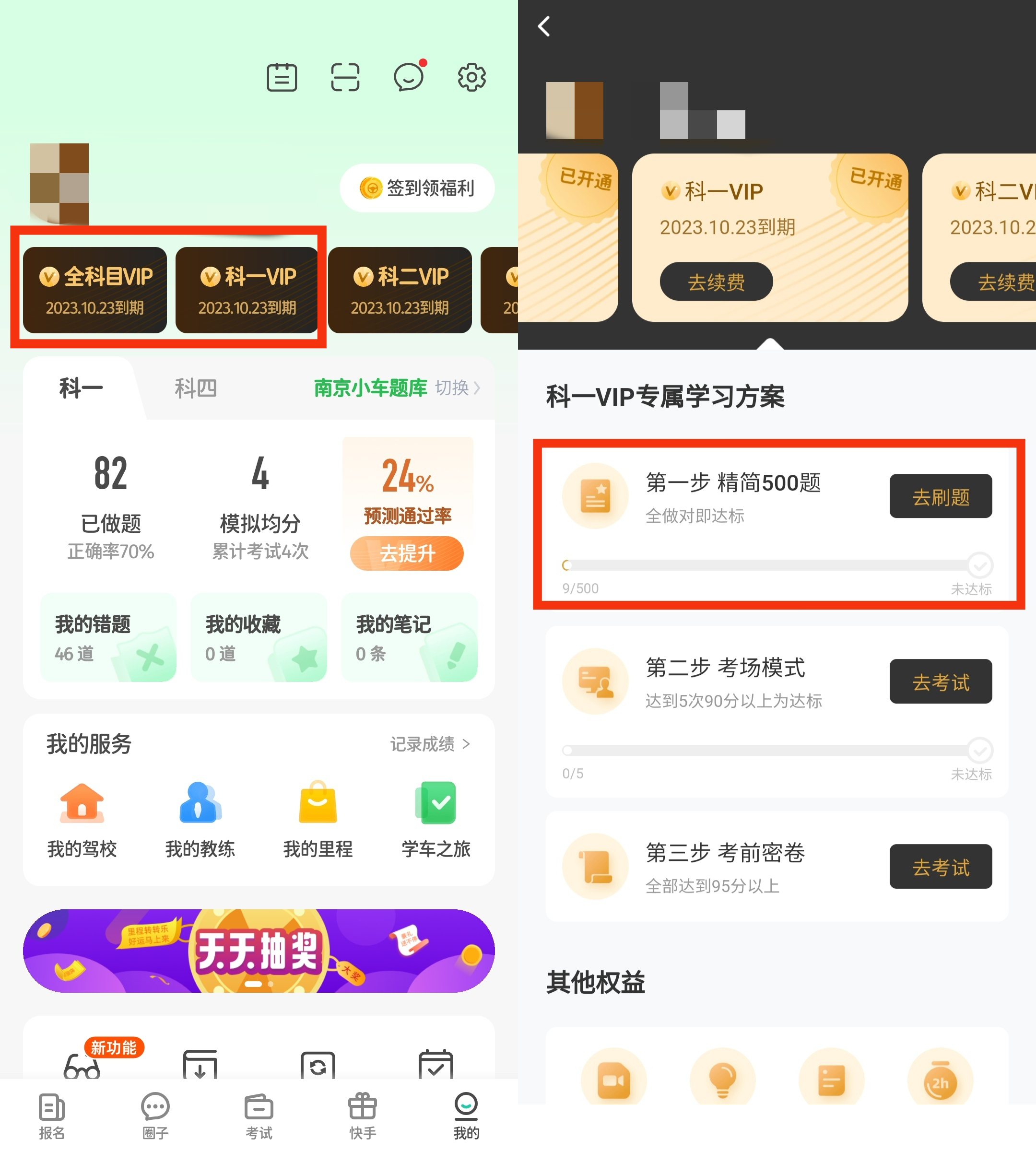 看到这里大家心里一定有疑惑吧,这么好的功能,一定要收很多费用吧?其实不然,“视频讲题”虽然作为元贝驾考app一大特色,但却因为其广泛的功能性,目前针对科一科四速成vip、全科目通关vip用户开放!