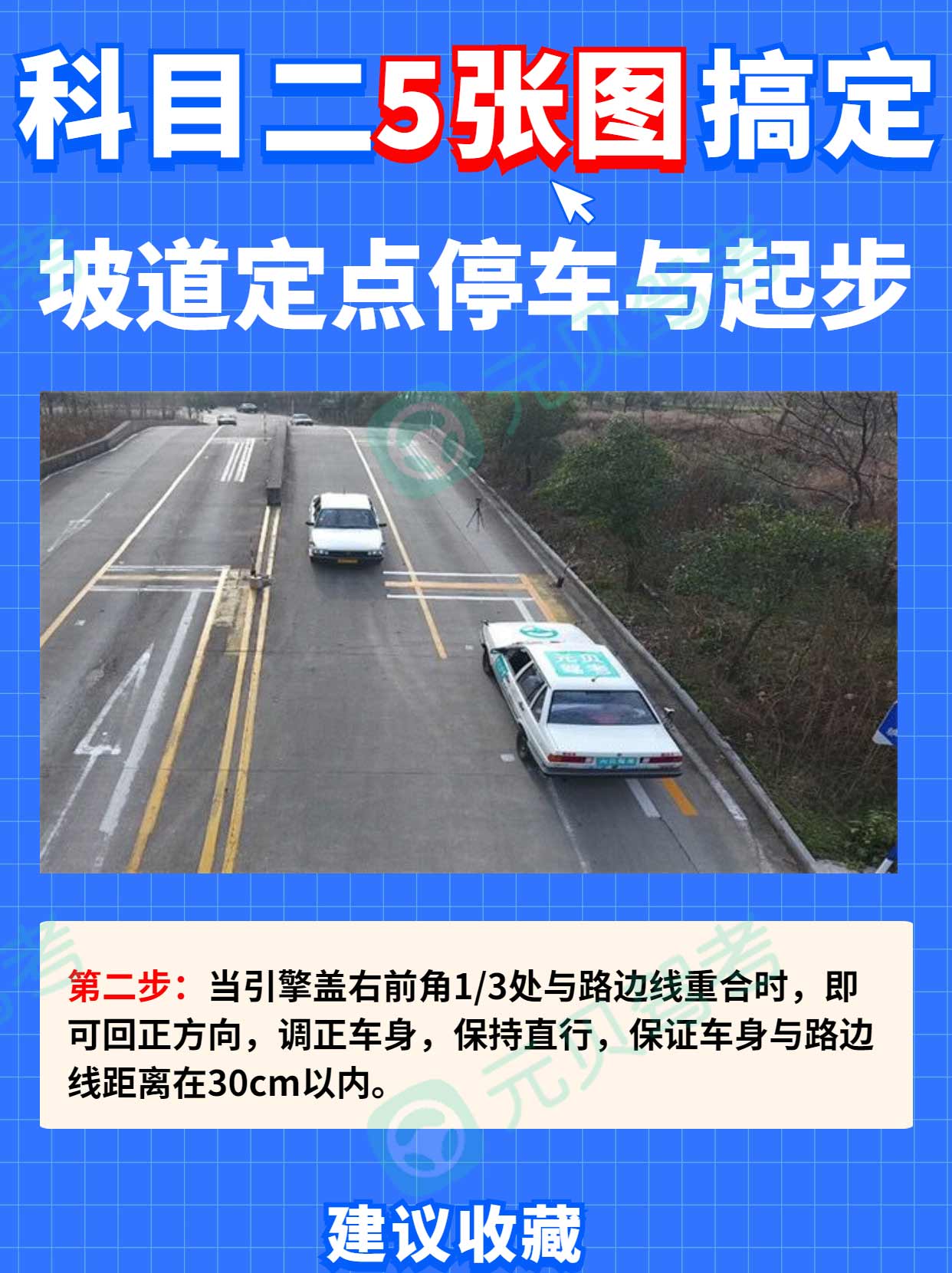 今天元贝驾考小编给大家分享坡道定点停车和起步的几个关键步骤,帮助学员效率掌握,考试一把过。