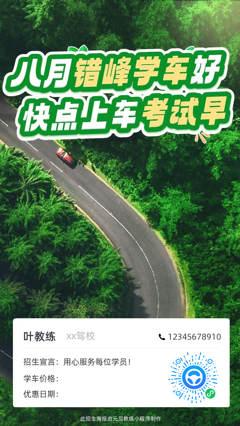 小提醒:元贝教练app和小程序同步上线了热门招生海报噢~