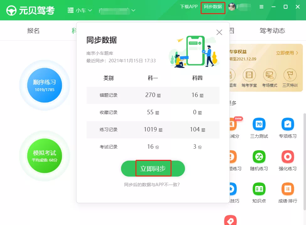 元贝驾考pc版与app端的刷题数据是联动的,登录同一账号后练习记录、错题记录、考试记录、收藏题目等都可以同步更新,上下班路上用手机,家里、公司用电脑,随时随地,在线刷题,学习状态,同步更新,还怕驾考考不过?不存在的!