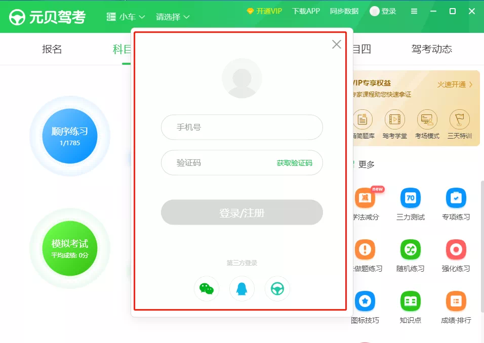 元贝驾考有手机号、微信、qq、元贝驾考app扫码四种登录方式。