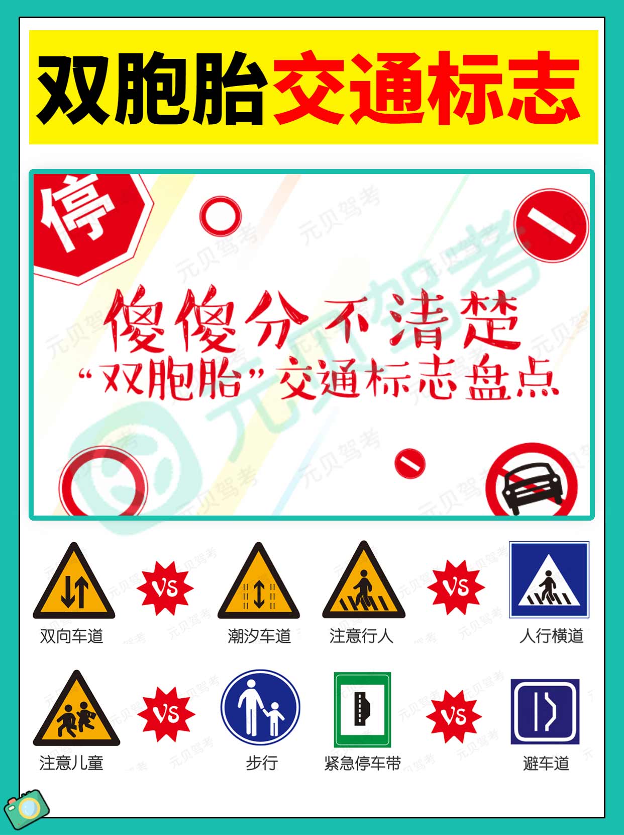 刚接触驾考,除了要掌握一些做题技巧外,这些长得相似的交通图标也不能混淆,元贝驾考小编为了方便大家记忆,将几个易混淆的常见的交通标志整理出来了,认识这些交通标志不仅对你们科目一科目四理论考试有帮助,对你们拿证后上路行驶也会有所帮助的~分不清的学员可要小心了,不然全家的驾照分都不够你扣的!