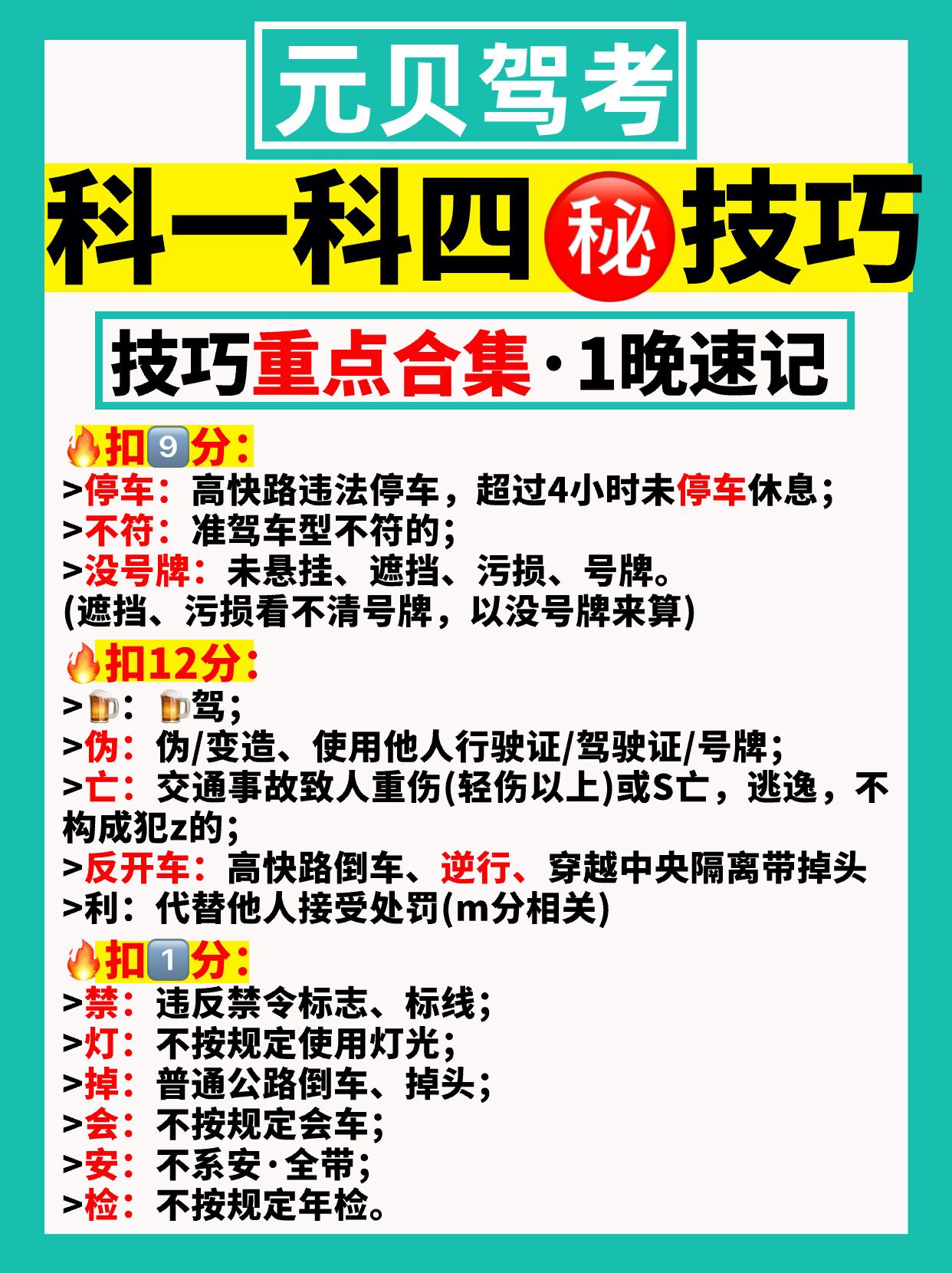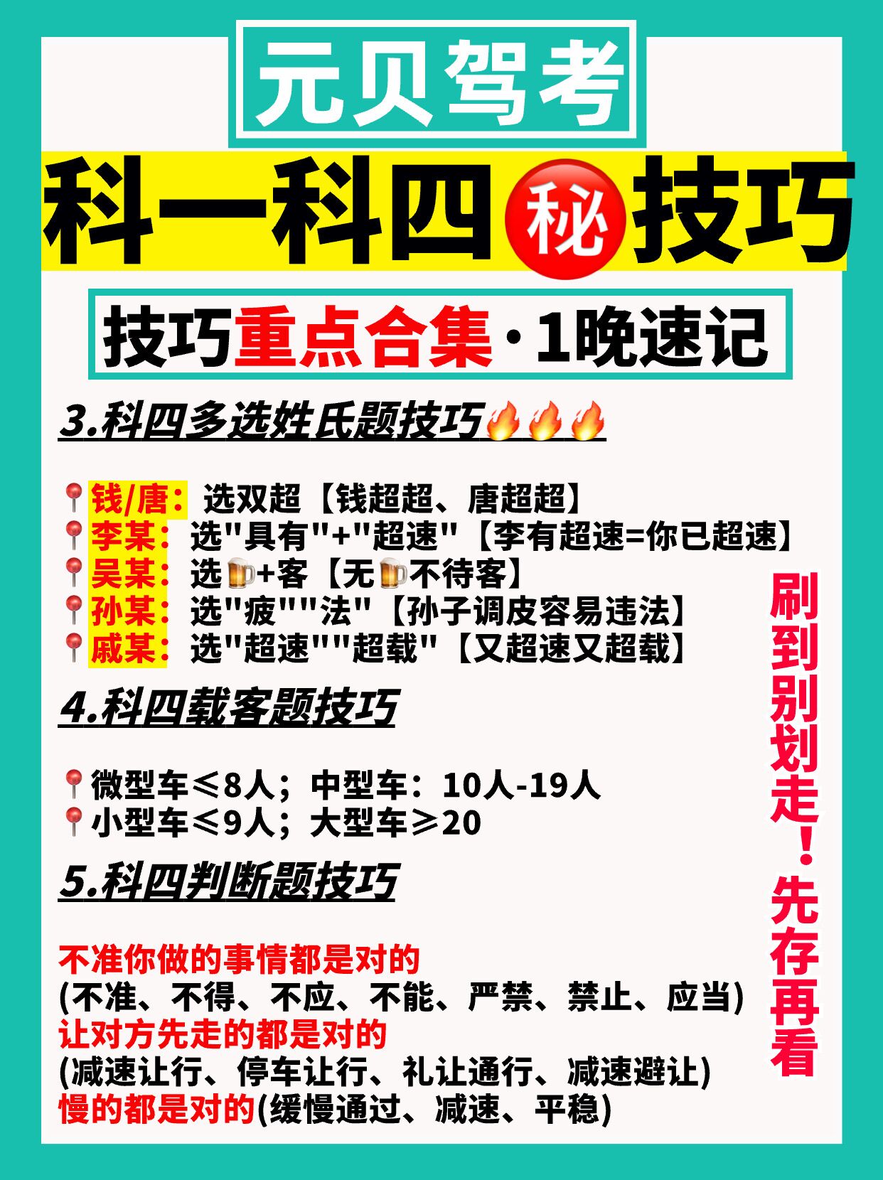 科目一科目四题太多刷不过来?这6大速记口诀了解一下。元贝驾考小编给大家整理的科一科四驾考技巧一定要牢记!可以帮助大家少花时间、少背很多题。
