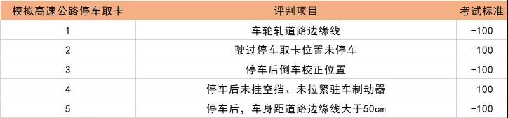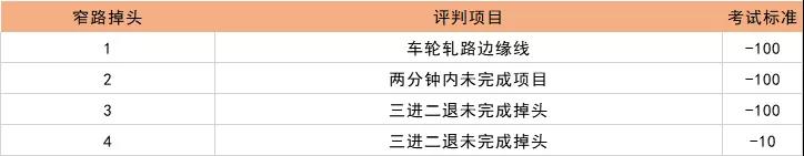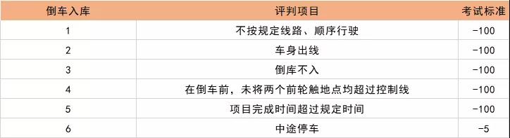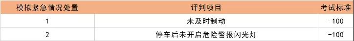科目二各项扣分标准如下: