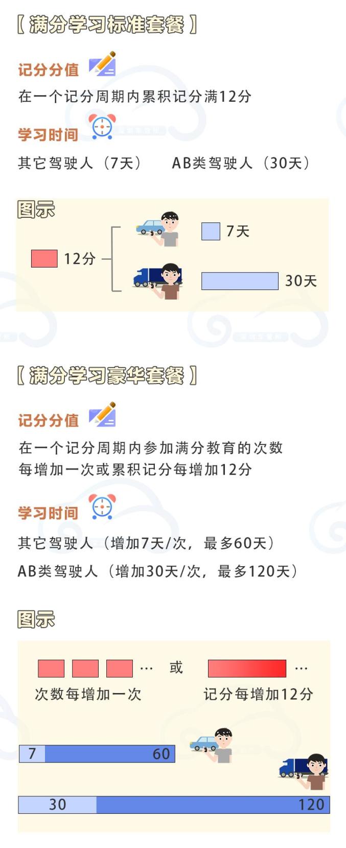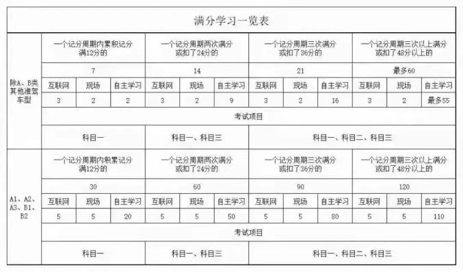 机动车驾驶人参加现场学习、网络学习的天数累计不得少于5天,现场学习的天数不得少于2天。大型客车、重型牵引挂车等驾驶人参加现场学习、网络学习的天数累计不得少于10天,现场学习的天数不得少于5天。学习的剩余天数通过自主学习完成。
