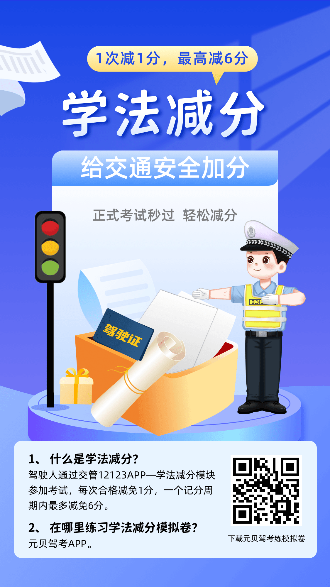 “学法减分”是多个城市为贯彻落实公安部交通管理局“接受教育减免道路交通安全违法行为记分”改革服务举措,提升机动车驾驶人交通安全意识所推广的一项措施。