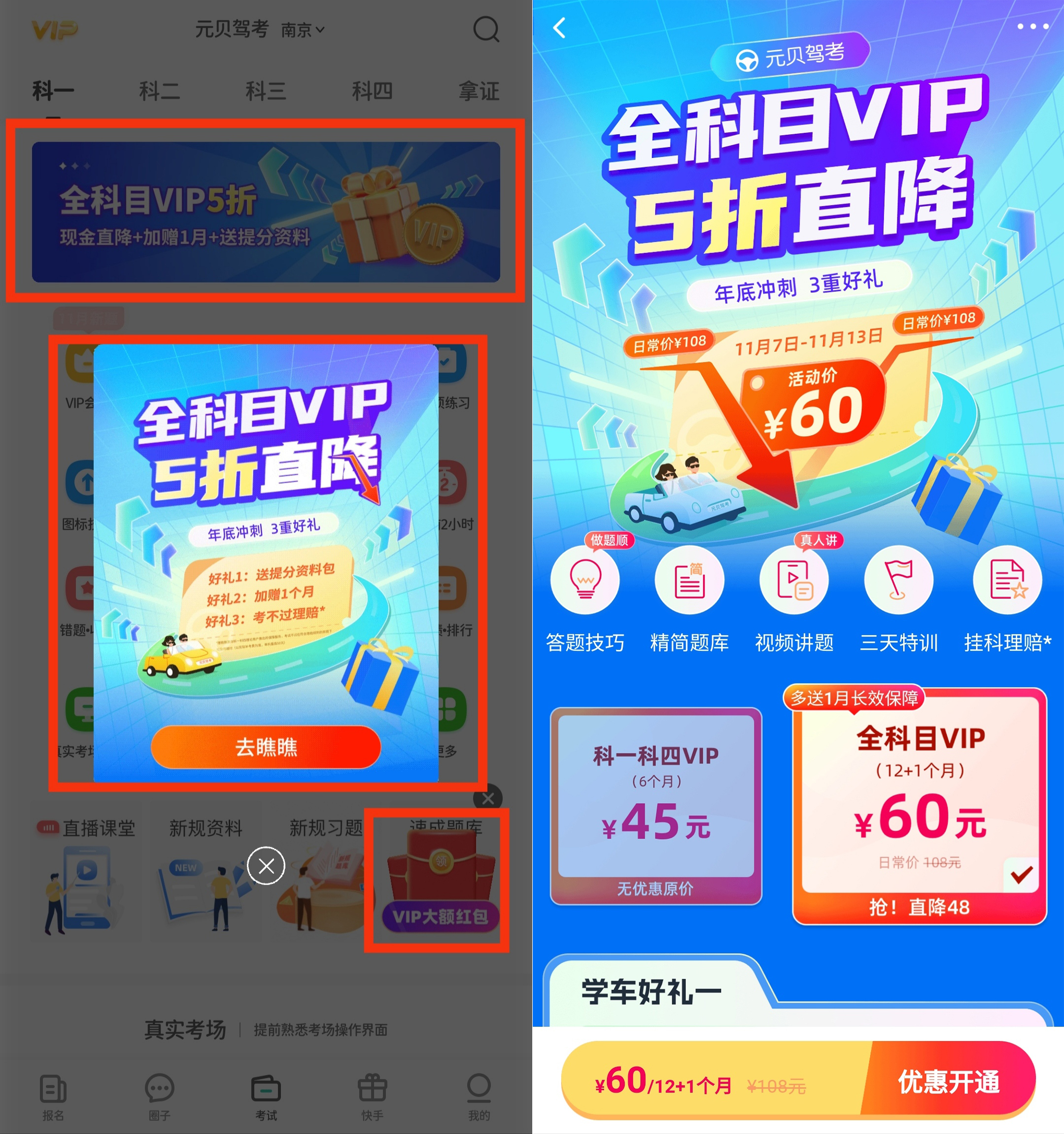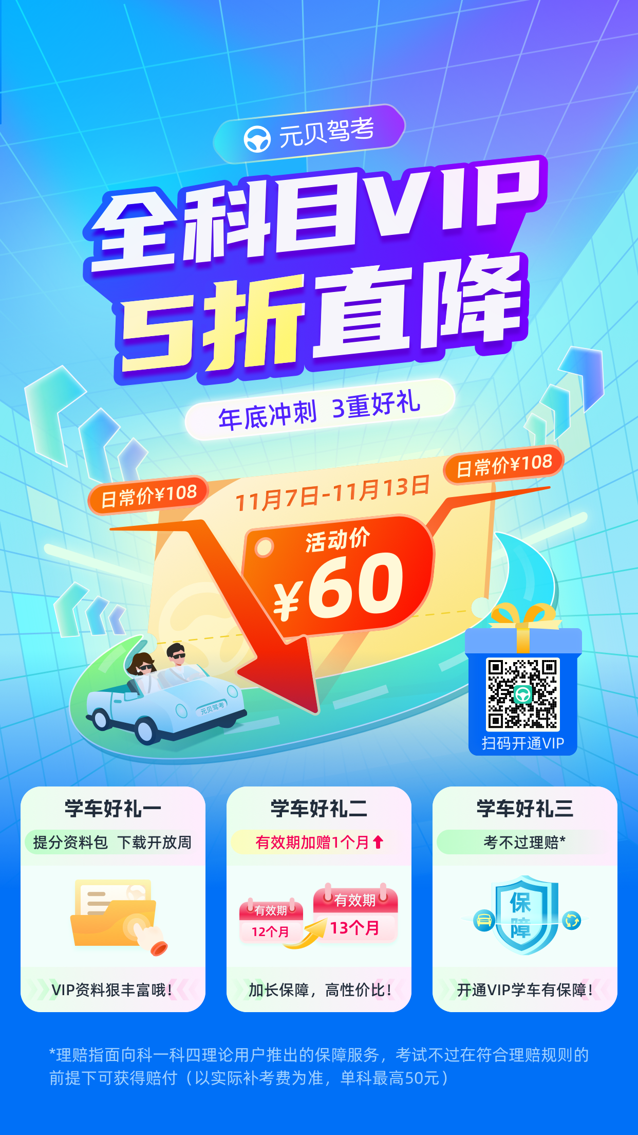 另外,双十一期间购买全科目vip还可享3重学车好礼噢